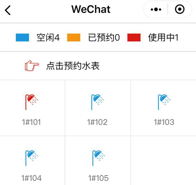 第二步:點擊“預約”功能,選擇想要使用的水控器進行預約,獲取預約碼及時間。